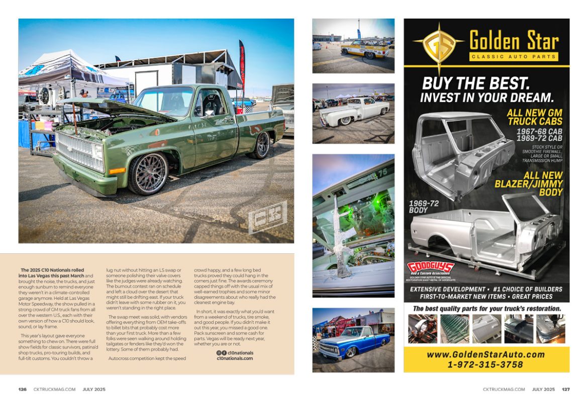 The 2025 C10 Nationals rolled into Las Vegas this past March and brought the noise, the trucks, and just enough sunburn to remind everyone they weren’t in a climate-controlled garage anymore. Held at Las Vegas Motor Speedway, the show pulled in a strong crowd of GM truck fans from all over the western U.S., each with their own version of how a C10 should look, sound, or lay frame.