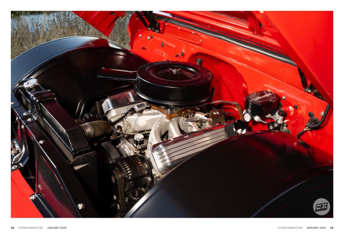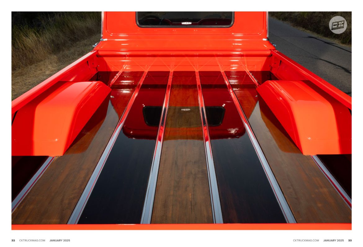 The first rendition of the project included the short bed conversion, a basic air ride suspension, and the wiring being finished, which ultimately led to the 350 SBC getting whipped back into shape. New brakes and fuel lines were also added, as was a Boyd’s fuel tank, a fresh 15-inch wheel and tire combo, and other items that renewed Jeth’s hope in the truck, but it wasn’t enough to last for the long haul. “I took the truck to a couple shows in this condition since it was road worthy, but I wanted more from it”, he admits. “I approached Todd and Jake with my ideas with the only stipulation of having everything being completed by the next Hot August Nights show, which was only 4 months away. I knew it was a big ask, and so did they, but they agreed to do everything in their power to get it done in time.”