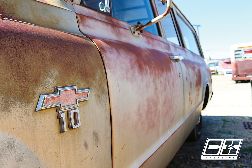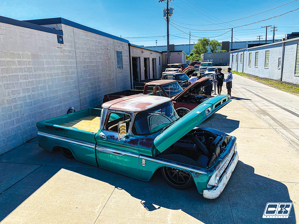 Customer cars are a massive part of the business, as well. “We have at least 20 vehicles in process at any given time.” Some of the quicker turns consist of their famous Stop, Drop, and Roll transformation. In short, take a barn-fresh truck or car and re-up the driveline with big modern brakes, up-to-date suspension (air ride or coilovers), and a fresh set of appropriately-sized wheels and tires. SDR transformations often include fresh interior treatments, modern gauges, rust repair, and even patina touch-ups by the one and only Reverend Jerome Borris. Schlongbed conversions (long bed to short bed) are popular, too. Technician Jeff Jasik is a master grafter and his stainless exhaust systems are works of art.