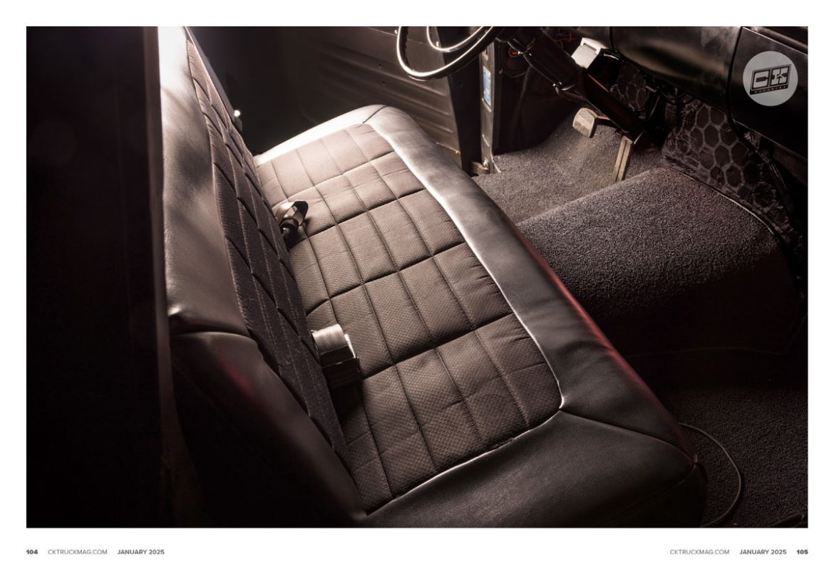 The build itself was a remarkable blend of custom work and thoughtful design, with every detail serving both form and function. The cab, for example, was chopped 2 inches, and the square upper corners of the doors were cut off and welded to the cab to round out the lines and match the truck’s sleek new profile. This work was done by the talented team at Yaril’s Customs, who helped Anthony create a smooth, modern look while keeping the vintage charm intact.